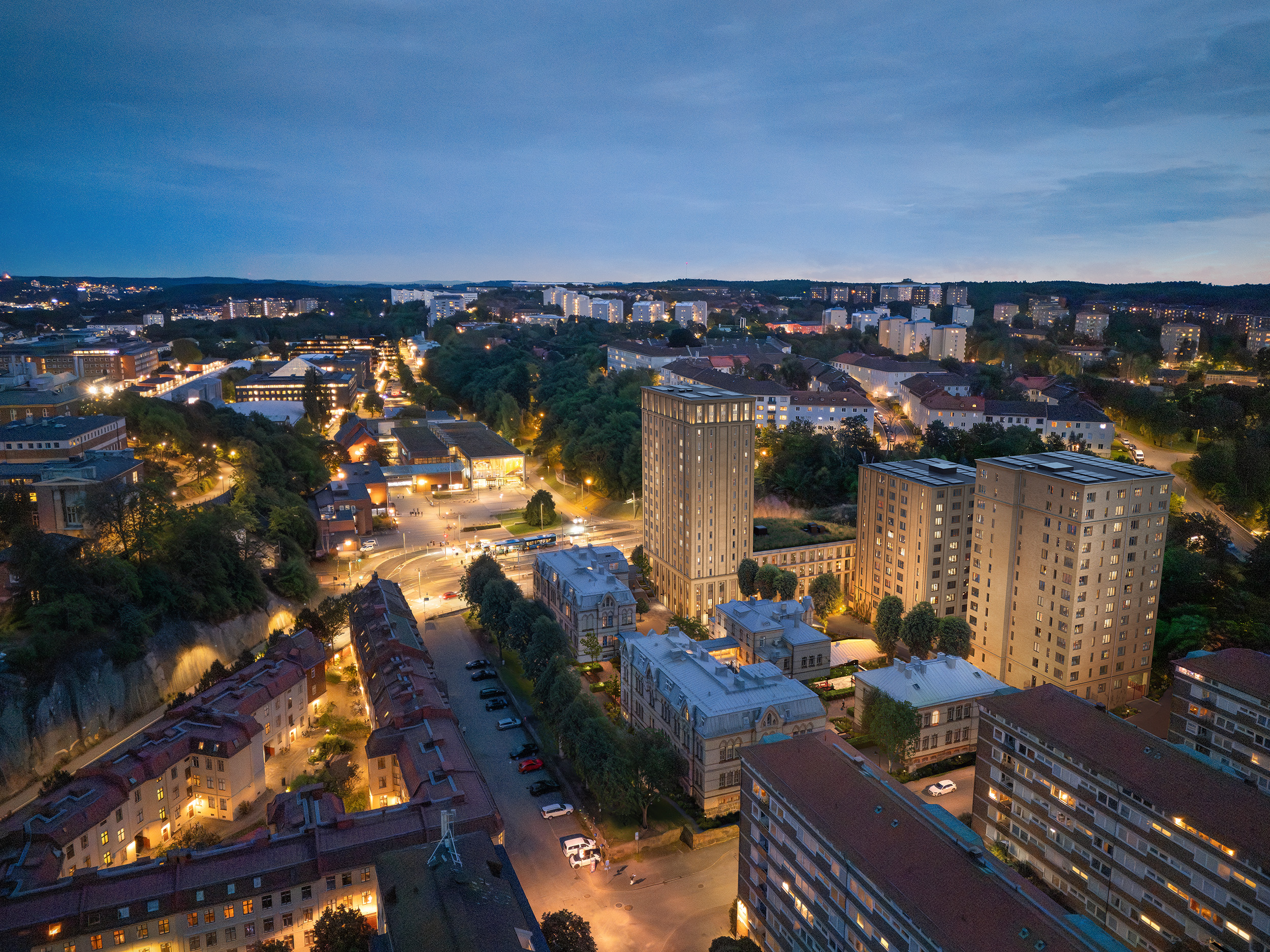 Mitt emot Chalmers huvudentré, granne med de gamla sjukhusbyggnaderna i Holtermanska, har Inobi gestaltat ett helt nytt kvarter med studentbostäder. Utgångspunkten har varit att skapa en sammanhållen arkitektur som kopplar an till den högklassiga tegeltraditionen i Johanneberg och vid Götaplatsen.