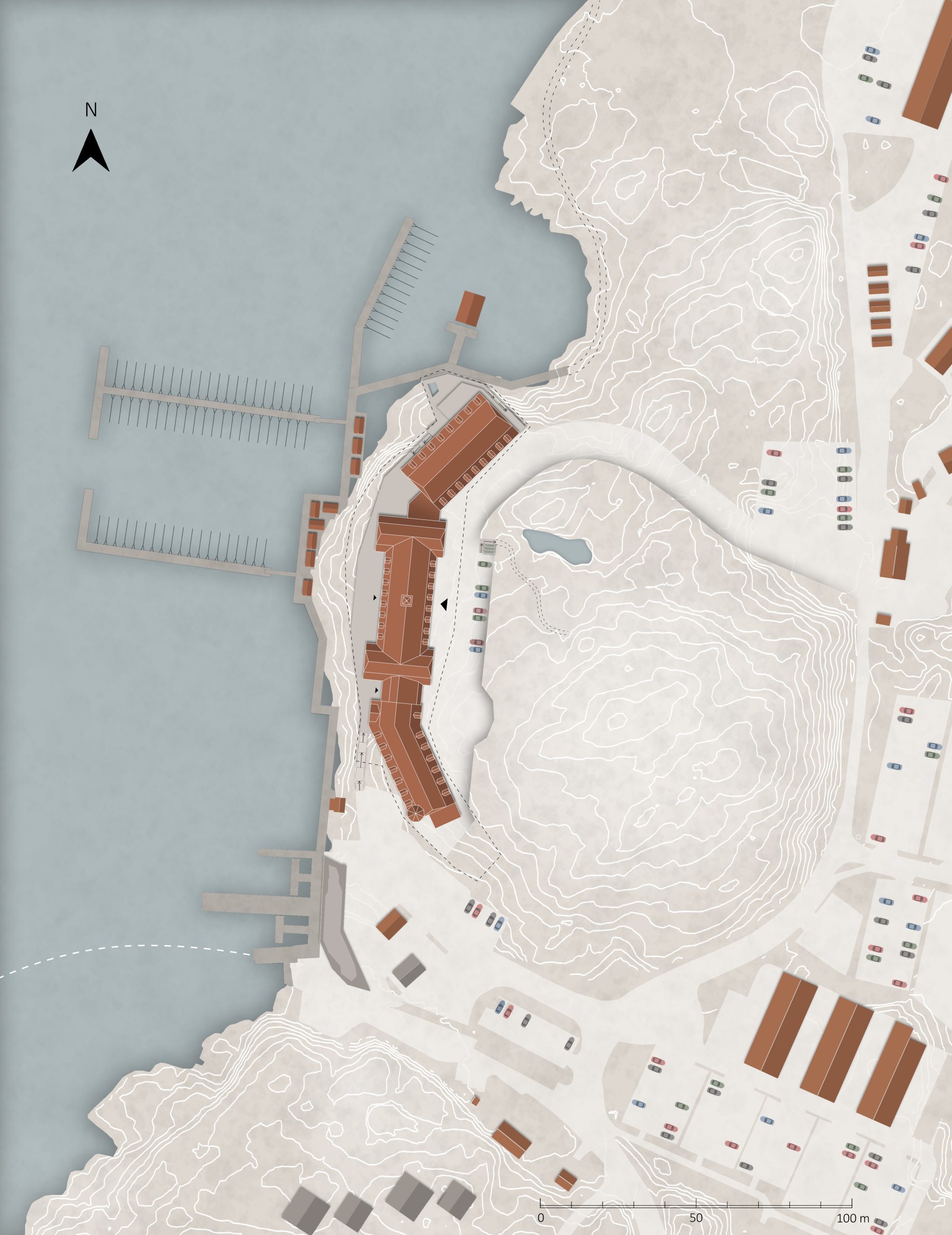 Situationsplan - Byggnadskropparna är noggrant placerade för att följa landskapets topografi och bevara klipporna
