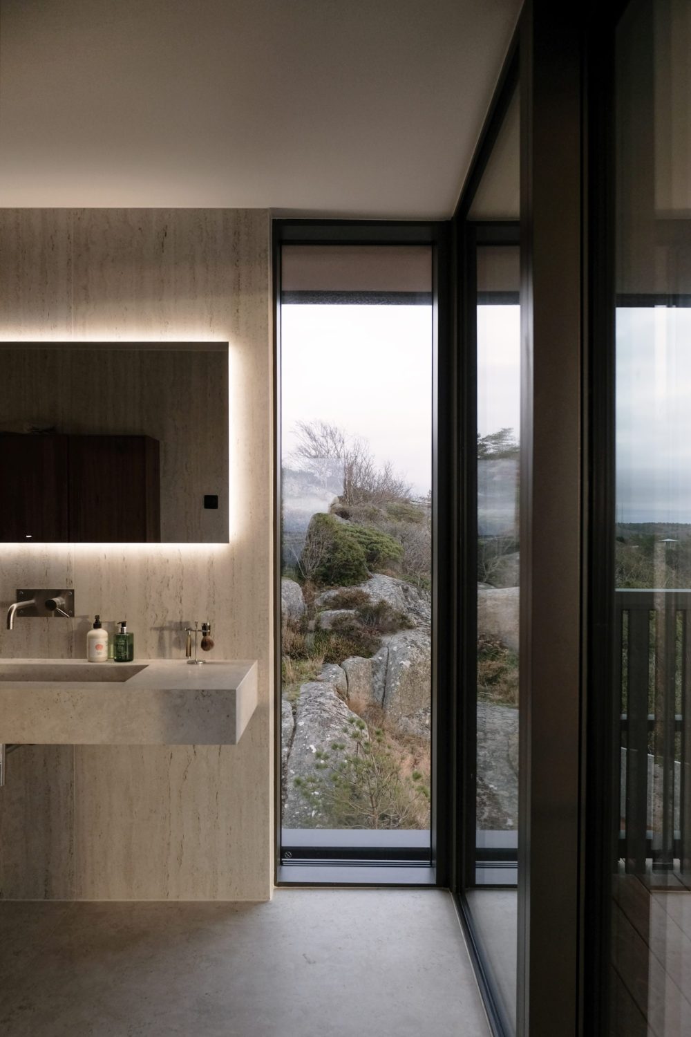 På en bergsknalle med utsikt över hav och skärgård, omgiven av klippor och ljung, vilar denna villa naturligt i landskapet. Projektet är en om- och tillbyggnad av ett tidstypiskt 80-talshus som färdigställdes våren 2024.
